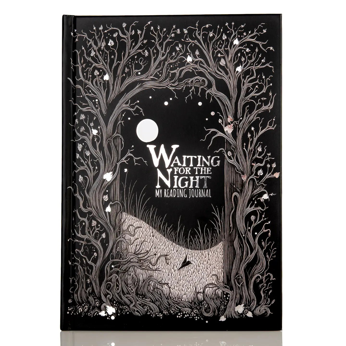 The "Waiting for the Night Reading Journal", is a gothic-inspired companion for avid readers. This meticulously crafted journal is designed to capture the literary journey, offering dedicated pages for tracking reading progress, exploring banned books, conquering reading challenges, managing the TBR list, and reflecting on unfinished tales. After the final page is turned, share thoughts, feelings, and insights about the books on the review pages complete with prompts and rating notes. Your customers will let their inner book critic shine! Includes silver foil detail on the cover, lay-flat binding, two ribbon page markers, and one bookish-themed sticker sheet. Packaged in a polybag with a branded belly band.